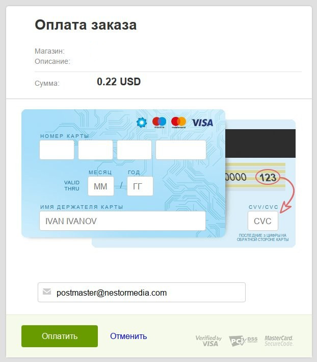- Введите номер CVC (он расположен на обороте карты и состоит из трёх цифр).