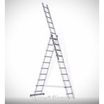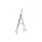 Трехсекционная лестница может применяться в качестве стремянки, и как просто лестница. Очень удобна в использовании. Изготовлена из алюминия, легка и практична.